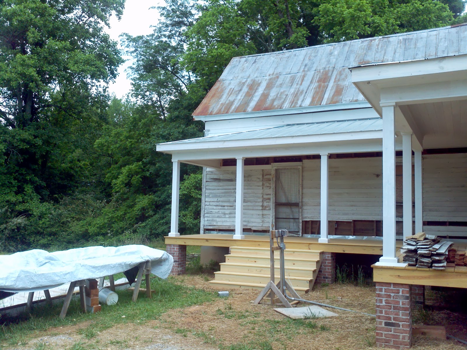 Below, the back porch ceiling. The trim, shingles, and porch ceilings are painted in a SATIN finish. The clapboards are a FLAT finish.